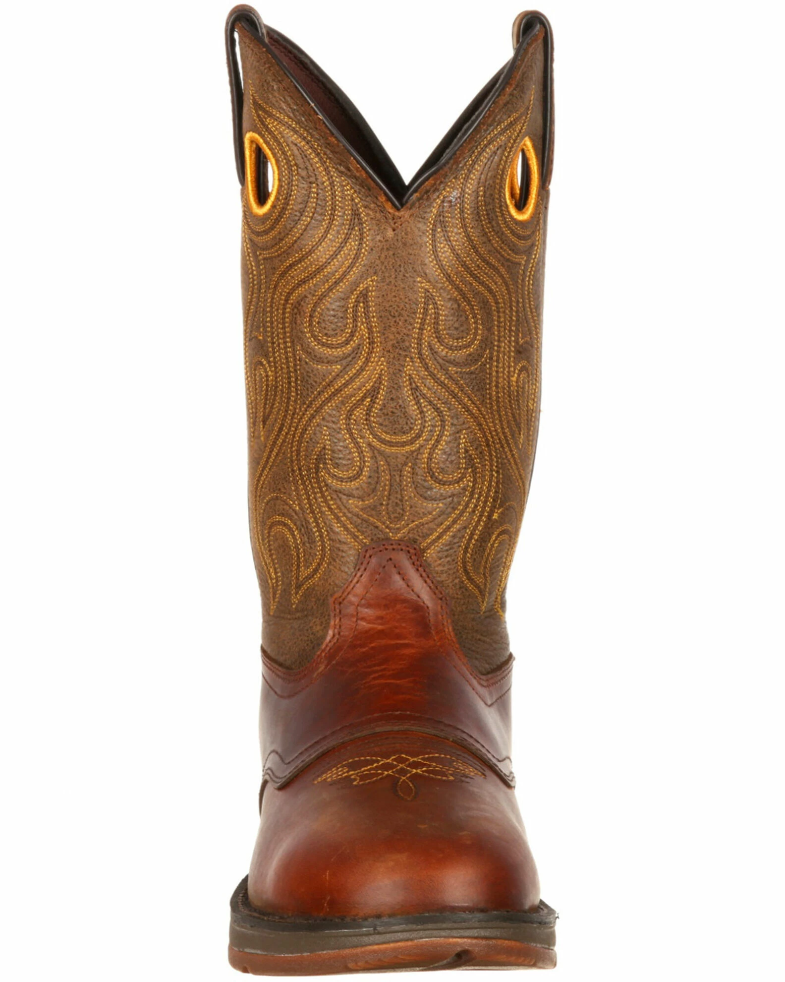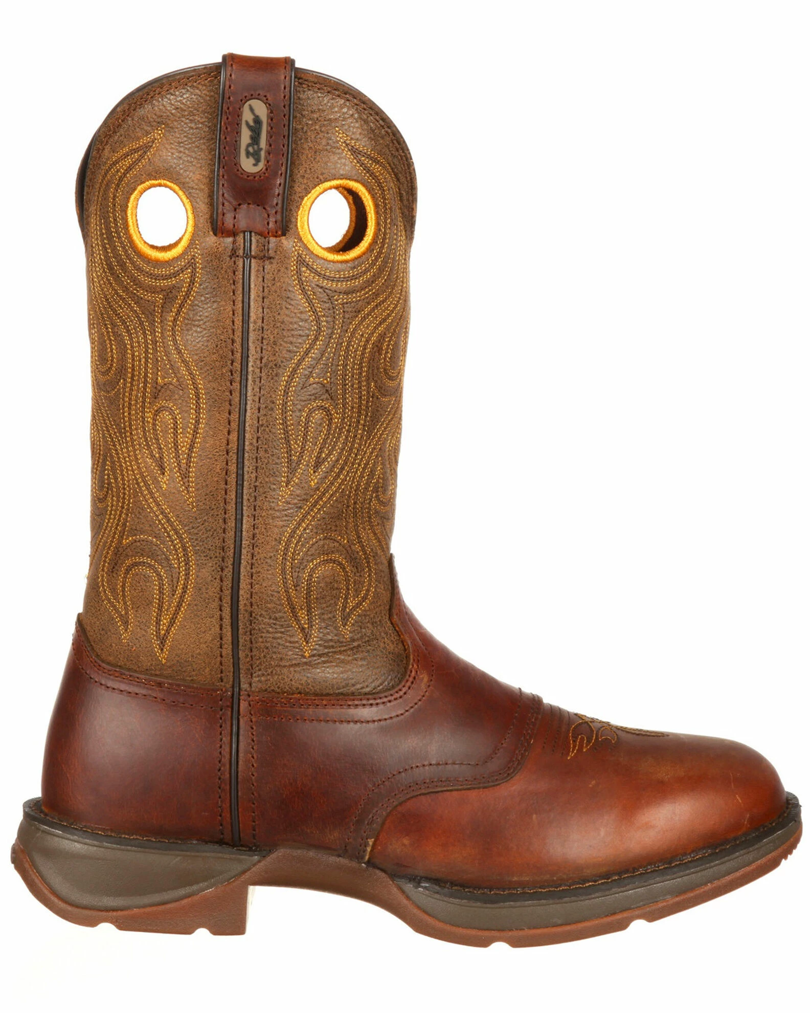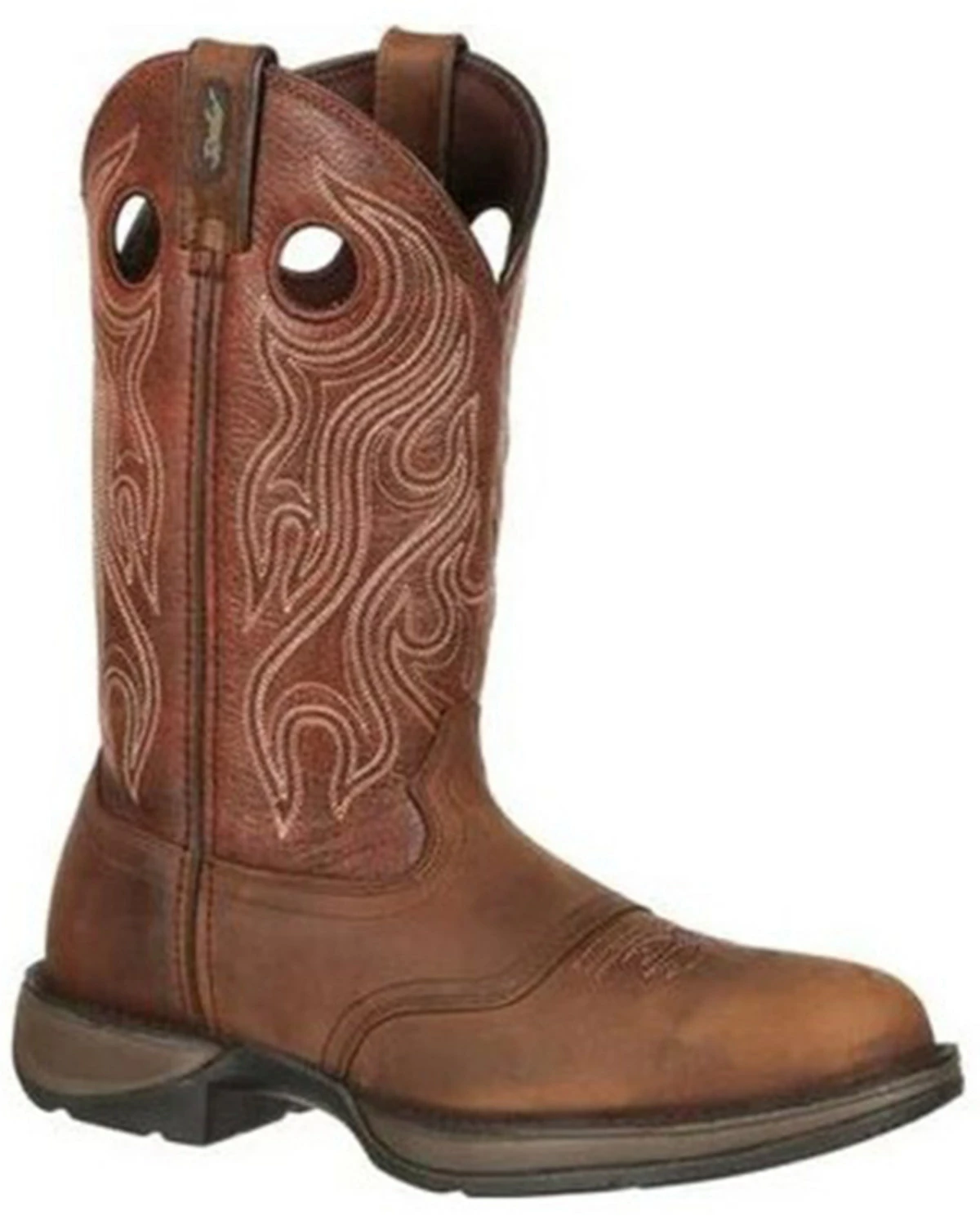 These Rebel western boots by Durango are both functional and fashionable with all the technology needed for solid work boots and the features needed for stylish boots. A dual density rubber and EVA outsole, a cushion flex insole, and a removable ventilated cushion footbed make the boots perfect for work around the farm. Western scrolling and complimentary colors makes the boots wearable around town, that way you don’t even need to change out of them after your work day!