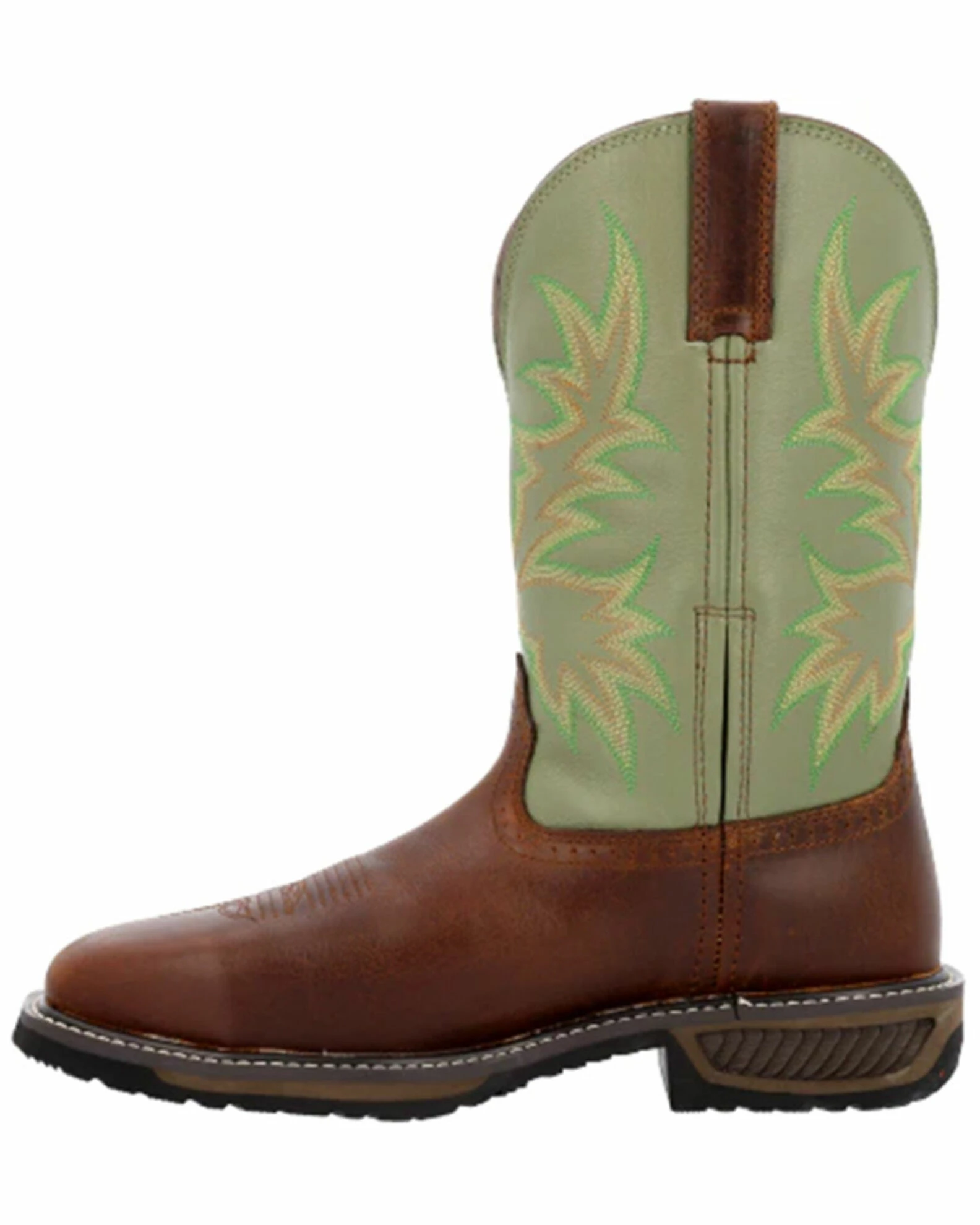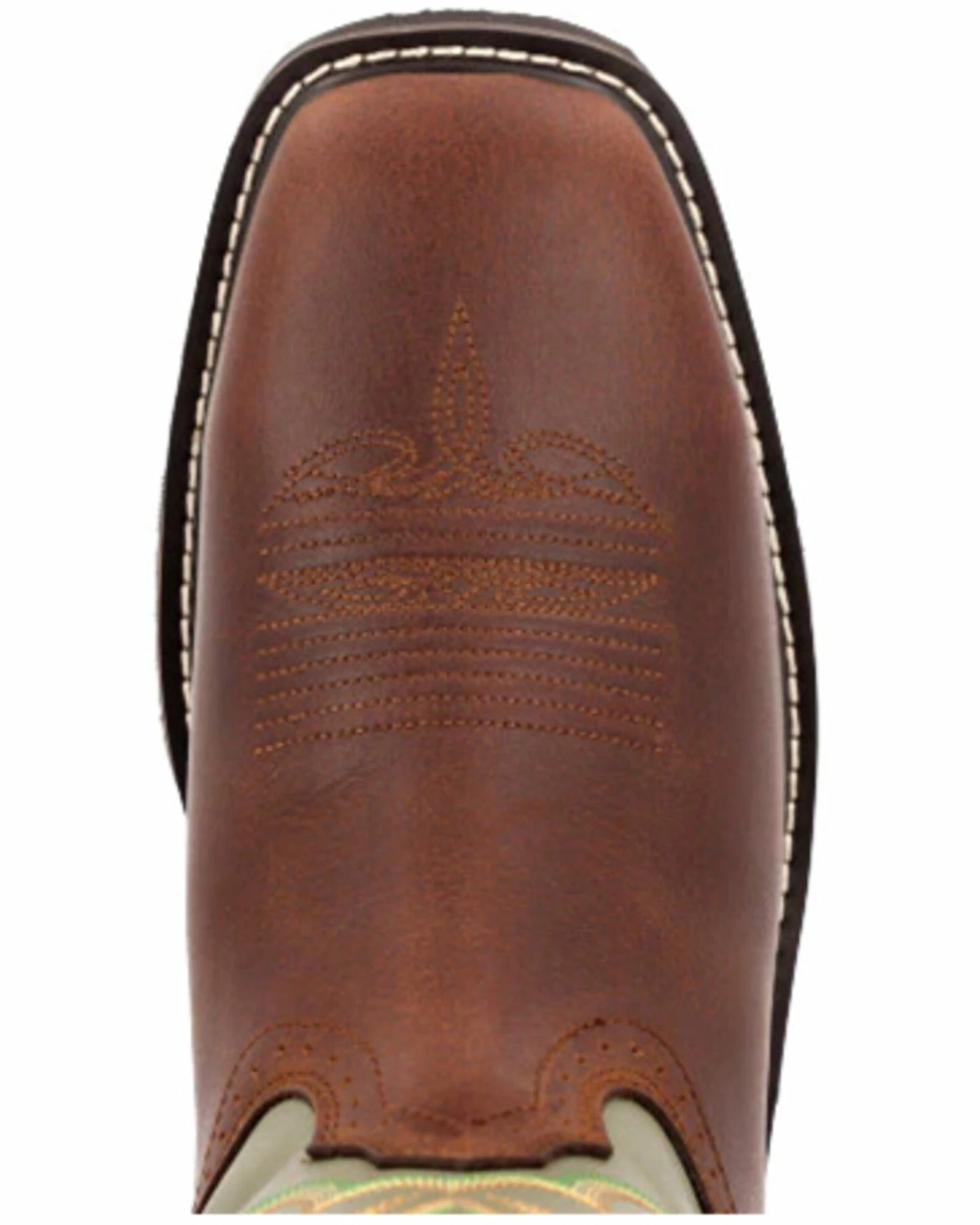 - Brown full-grain leather vamp with western embroidery design