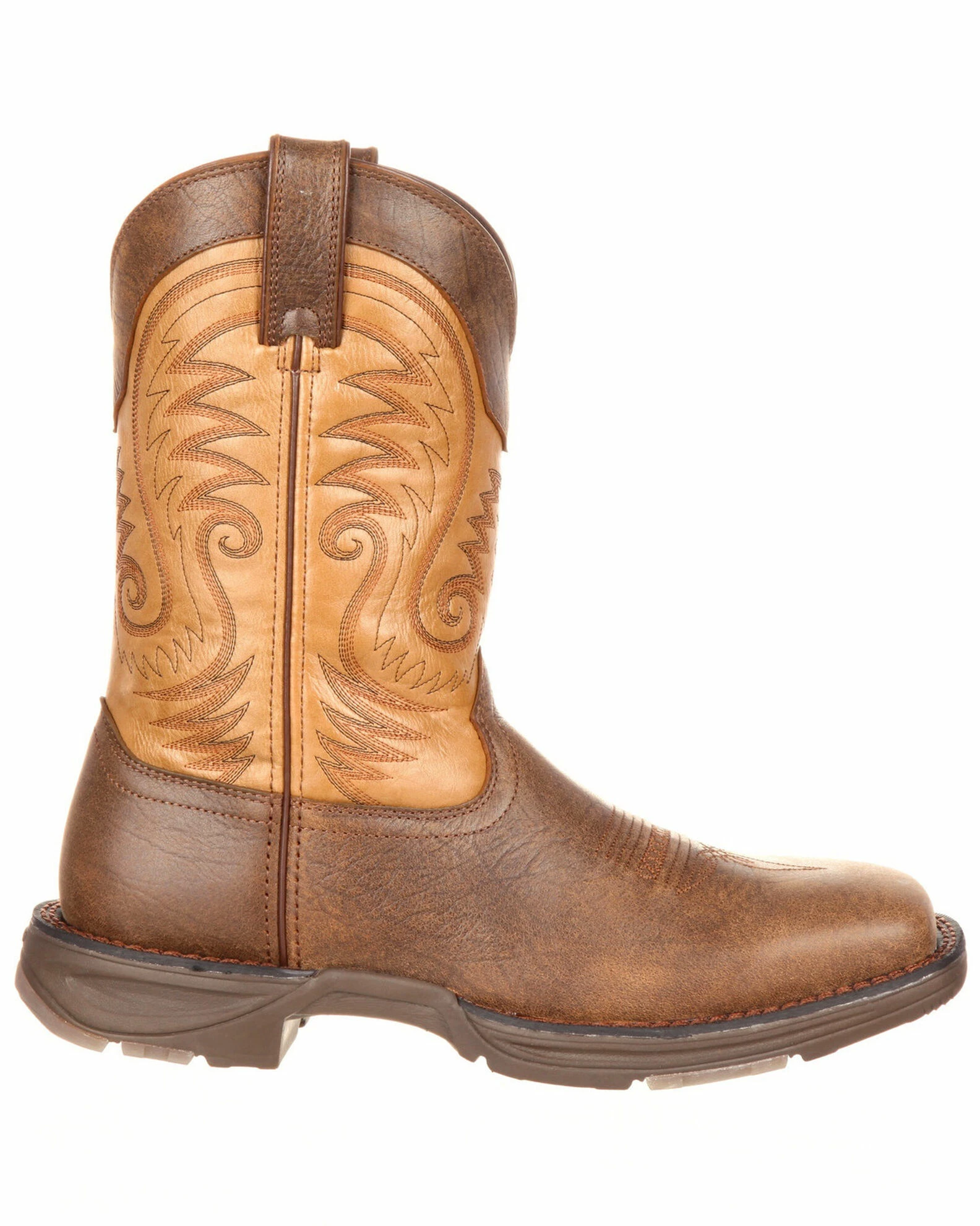 Look your western best in these Durango Men’s Ultralite Western Boots. These boots are made from a full-grain leather and sport an 11″ shaft and square toe. They feature a steel shank and cushion footbed for maximum support and comfort. The soft mesh lining makes these boots a breeze to wear. A 1 1/2″ heel finishes these handsome western boots. Pair with jeans for a classic western look.