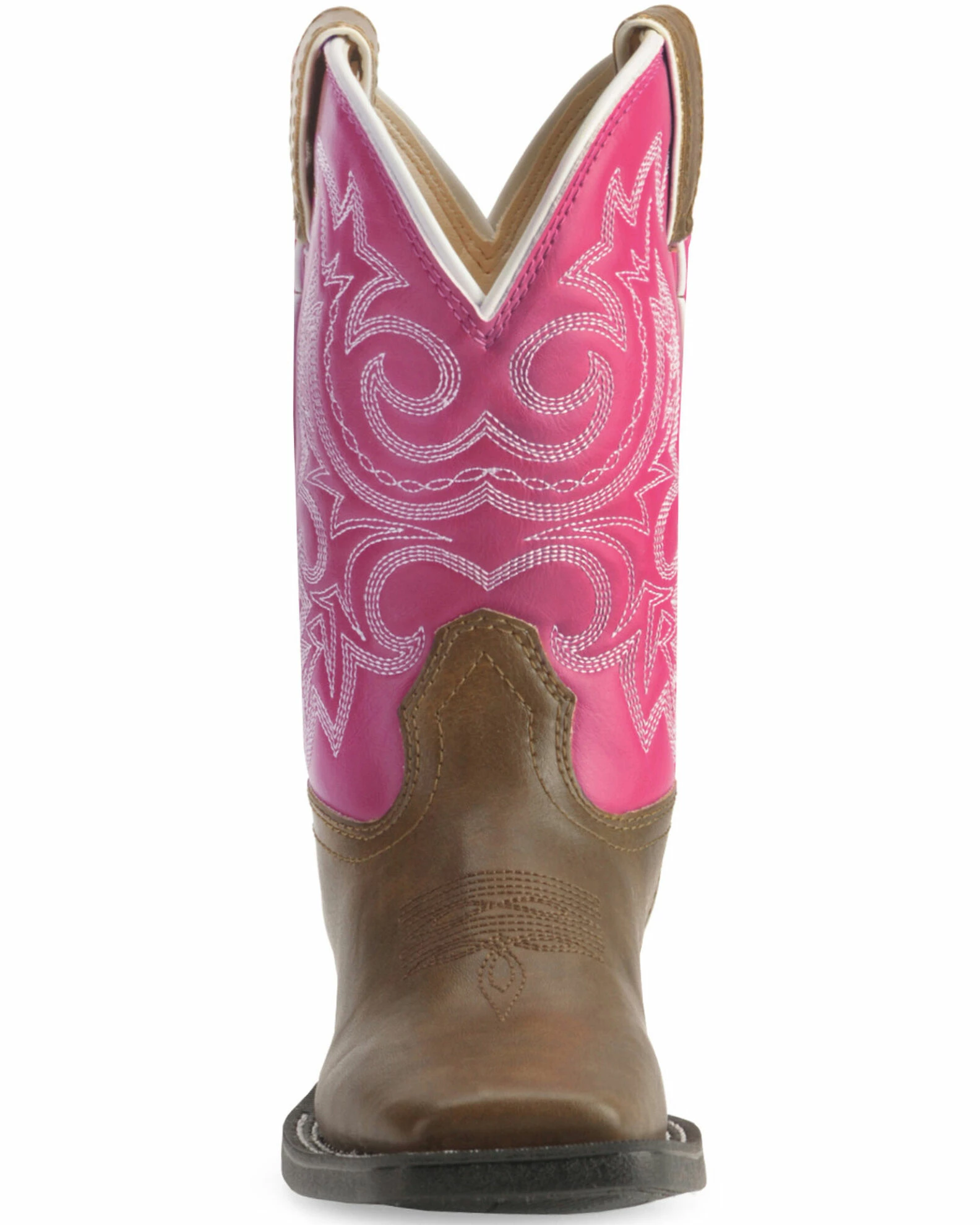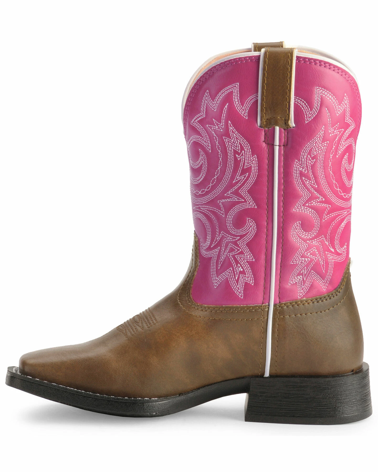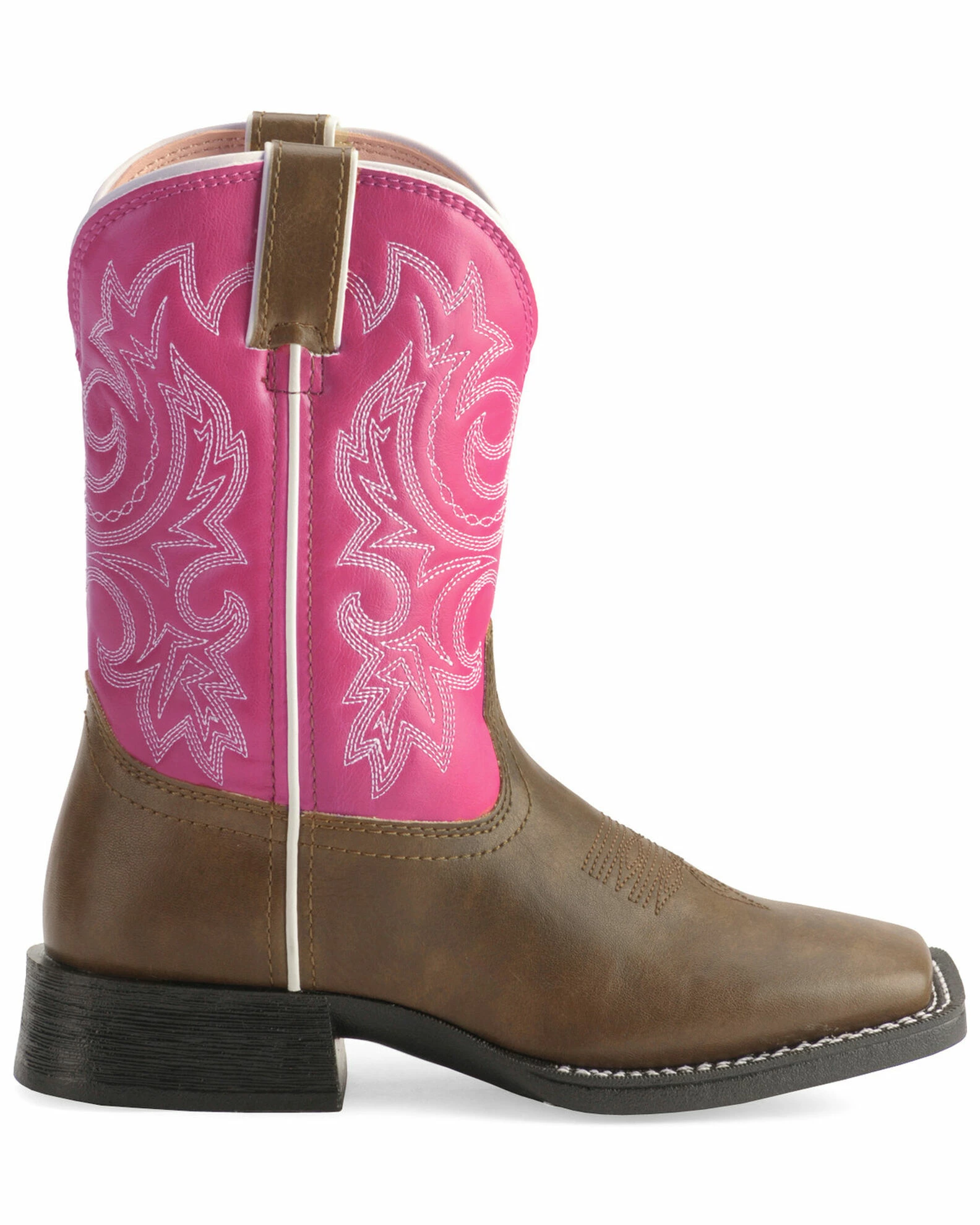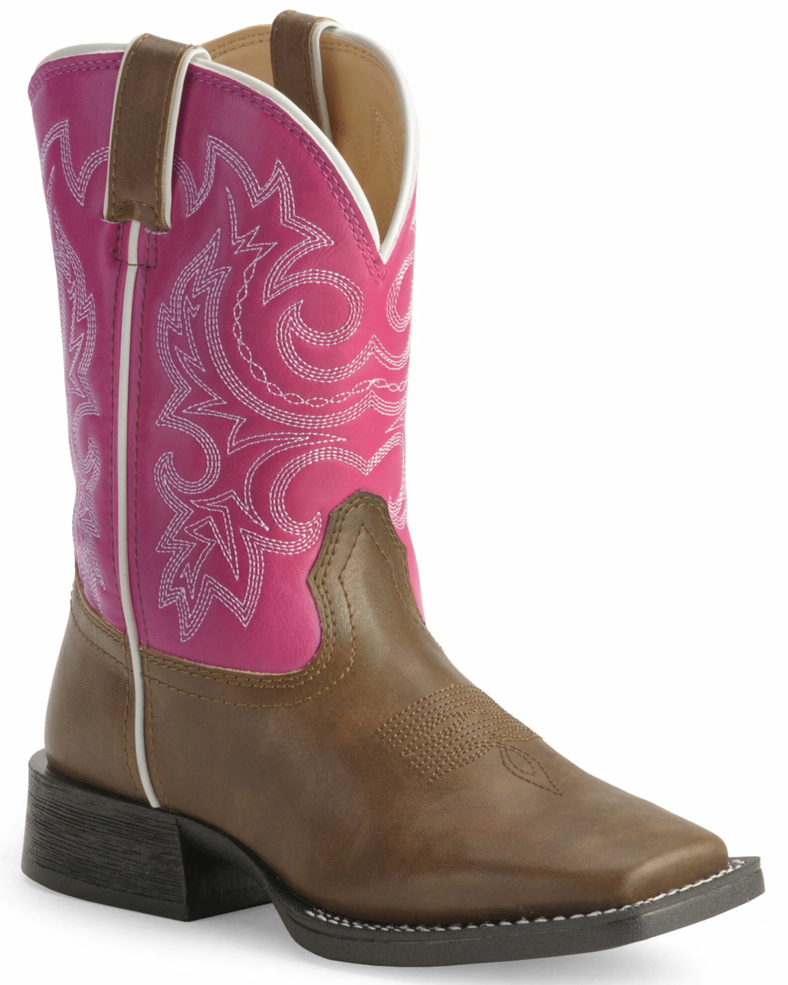 Your little girl aching for the perfect cowgirl boots? With western fancy scrolling, a 1 1/8″ stockman heel, and square toe, your child can enjoy these boots and dress like mom! The synthetic leather-like upper can be easily cleaned with a quick wipe down with a cloth. The cushion flex insole will give your child comfort and support during her long hours of play, and the PVC outsole provides long lasting wear. So much like the real thing, your baby girl will adore these boots!