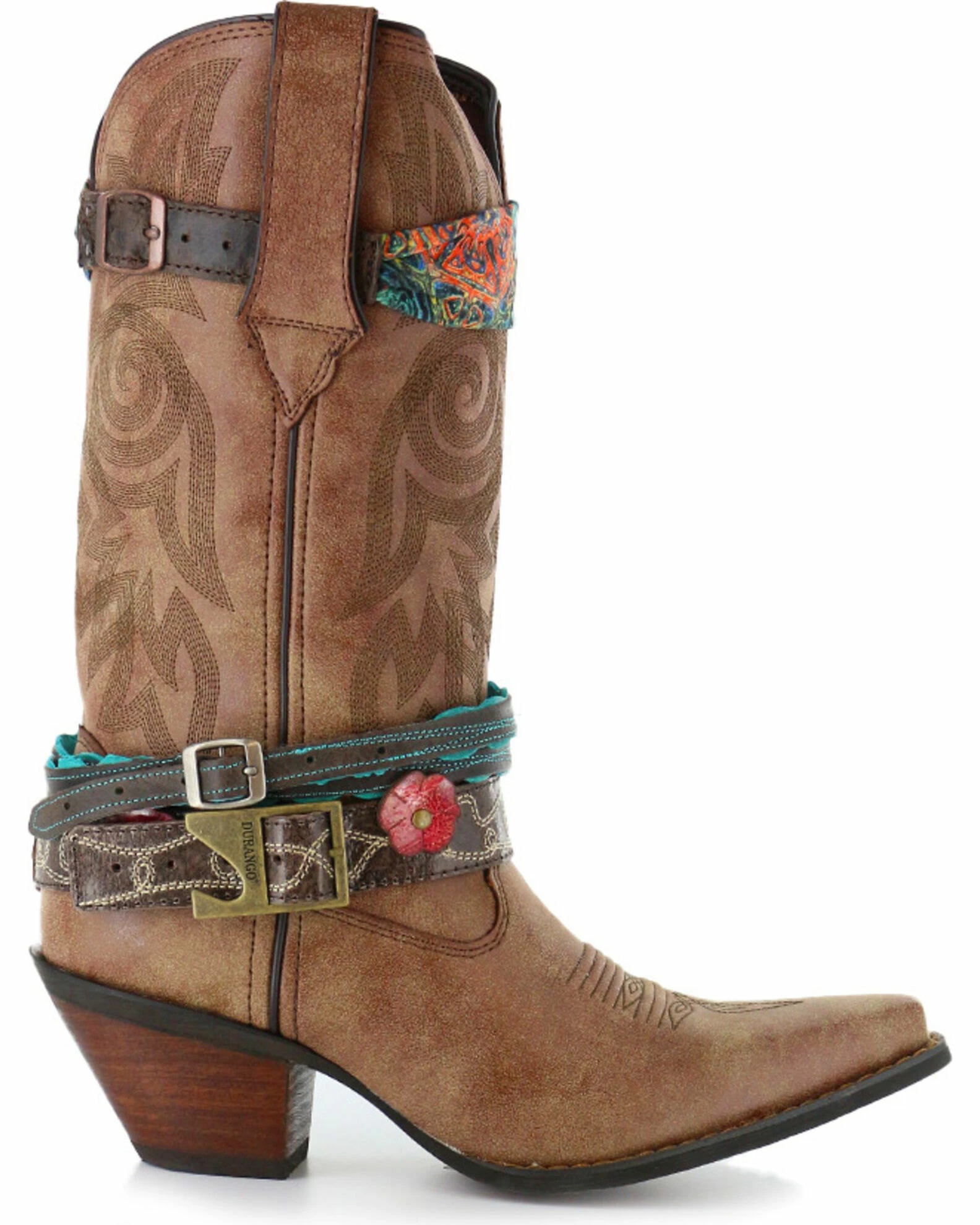 Kick up your heels in these Crush by Durango Women’s Accessorized Western Fashion Boots. These boots have a stand out look with three decorative straps that can be mixed and matched. Each strap has buckle so these boots can be worn with or without the accessory straps. Perfect for tail gating, dancing and concerts not only are these boots great to move around they have a bottle opener on the buckle of the accessory strap.