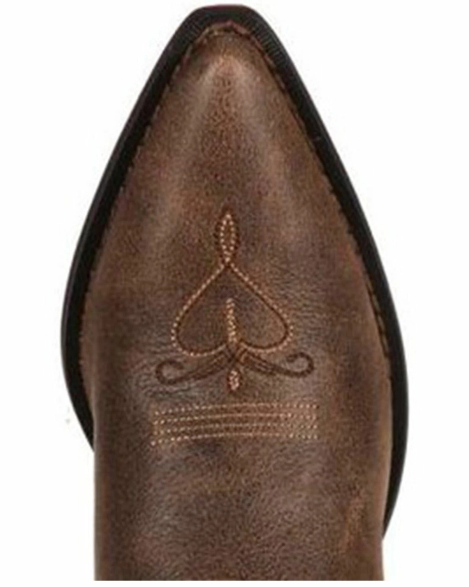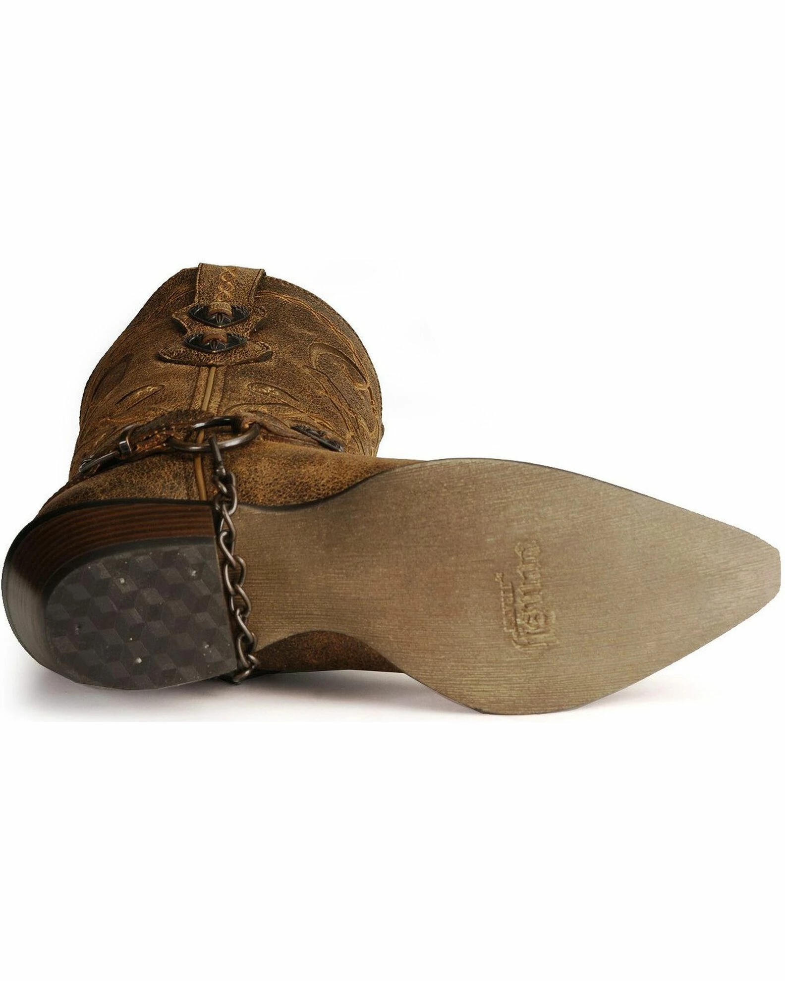 Dance the night away with your favorite cowboy with these fashionable Crush western boots by Durango. These boots are made with fashion and comfort in mind. The leather uppers are combined with a pointed toe and 1 7/8″ heel for an authentic cowgirl look. The soft mesh lining on the inside helps keep you comfortable no matter where you’re going in your boots. These boots have rich-looking details, like the removable heart concho harness strap with antique copper hardware. The composition outsole has a slim profile and is great on the dance floor or a night on the town.