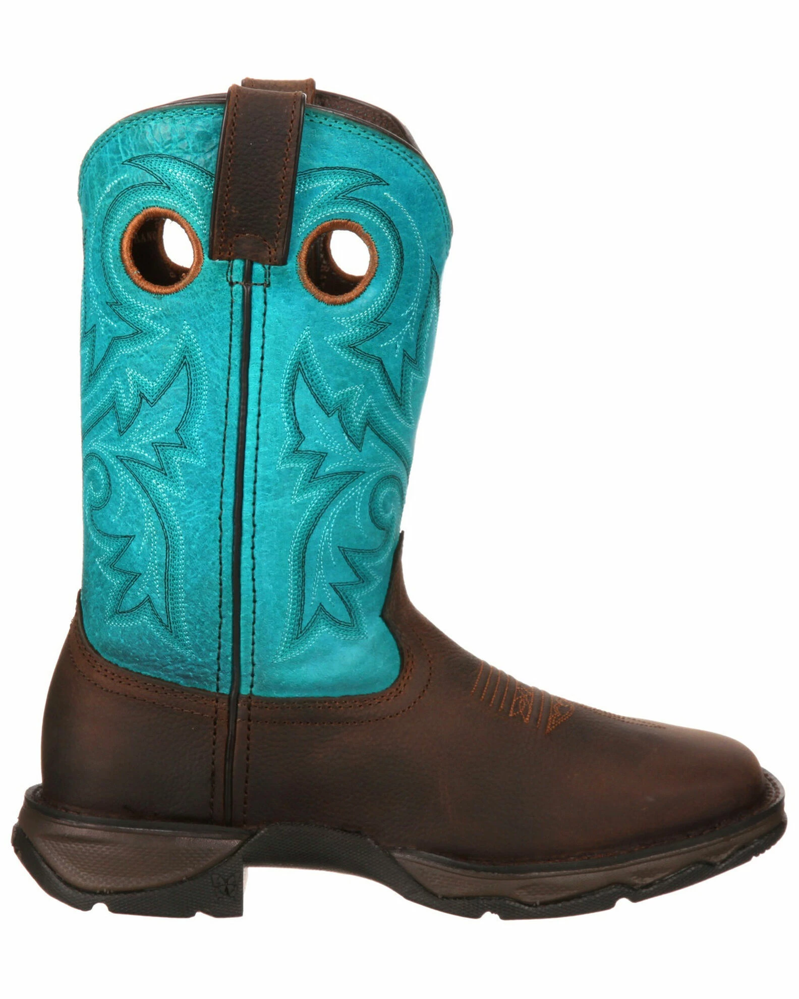 These Durango Women’s Rebel Square Steel Toe Western Work Boots are fully loaded. These boots are packed with technology to maximize comfort and safety. These full-grain leather work boots have a 10″ embroidered shaft with a square steel toe. These boots feature a slip-resistant and non-marking rubber outsole to keep you steady. The mesh lining and cushion flex insole provide extra layers of comfort. These boots meet the ASTM F2413 electrical hazard/protective toe standard. Wear these work boots next time you need to crush work around the stables.